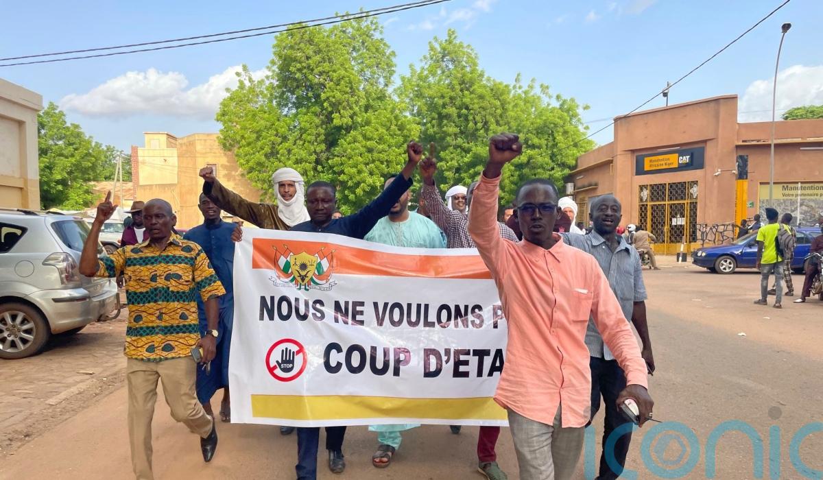 Before the announcement, hundreds of people took to the streets of the capital, Niamey, and chanted “no coup d’etat”, while marching in support of the president.