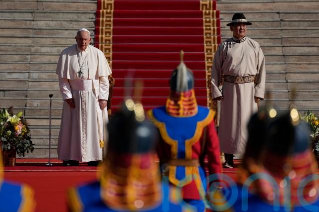Francis met President Ukhnaagiin Khurelsukh in a traditional Mongolian ger – a round yurt – set up inside the state palace in Ulaanbaatar, and wrote a message in the guest book that he was visiting “a country young and ancient, modern and rich of tradition”, as a pilgrim of peace.