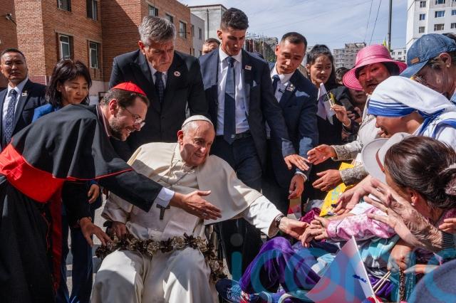 Francis also praised Mongolia’s efforts to care for the environment. The vast, landlocked country, historically afflicted by weather extremes, is considered to be one of the countries most affected by climate change. It has already experienced a 2.1C increase in average temperatures over the past 70 years, and an estimated 77% of its land is degraded because of overgrazing and climate change, according to the United Nations Development Programme.