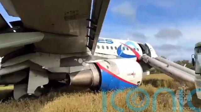 A Russian passenger plane with 170 people on board made a successful wheels-down emergency landing in a field, officials have said.