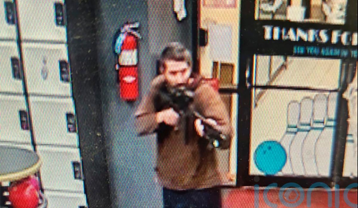 The Androscoggin County Sheriff’s Office released two photos of the suspect on its Facebook page that showed a gunman walking into an establishment with a weapon raised to his shoulder.