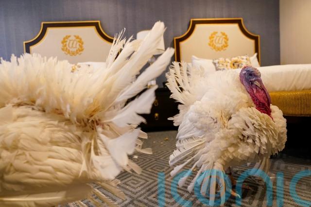 The 20-week-old, 42lb birds were hatched and bred in Willmar, Minnesota, by the Jennie-O turkey company for the occasion.