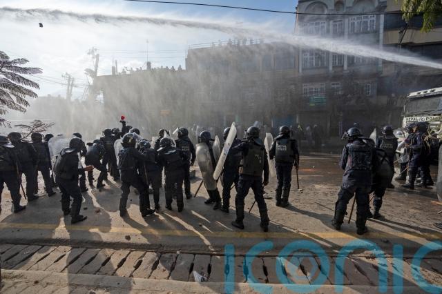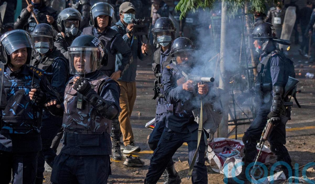 Riot police used batons and tear gas to halt tens of thousands of supporters of Nepal’s former king who attempted to march to the centre of the capital to demand the restoration of the monarchy and the nation’s former status as a Hindu state.