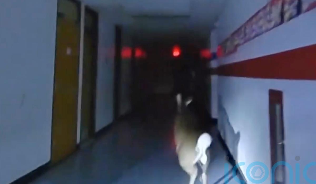 It then entered a classroom by opening a door that happened to be unlatched and jumped on to a bookshelf, scattering some items – but it did not cause any major damage.