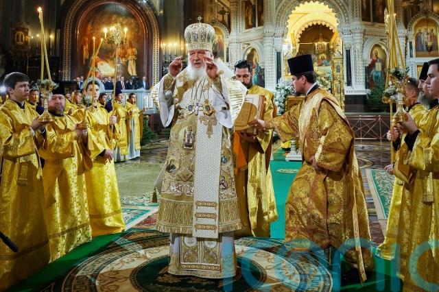 Patriarch Kirill provided over the service at Moscow’s Christ the Saviour cathedral.