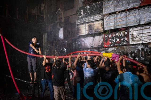 Crews said the fire began in a restaurant on the first floor of the building in the heart of the capital, and many people were trapped by the flames.
