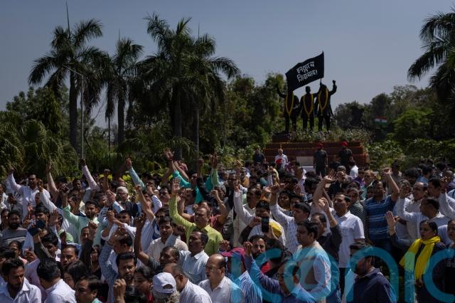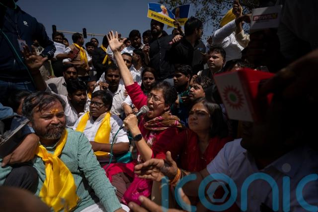 Chanting: “Kejriwal is Modi’s doom” and “Dictatorship won’t be tolerated,” protesters accused Mr Modi on Saturday of governing the country under a state of emergency – a claim the opposition has long professed – and using federal law enforcement agencies to stifle opposition parties before the election.