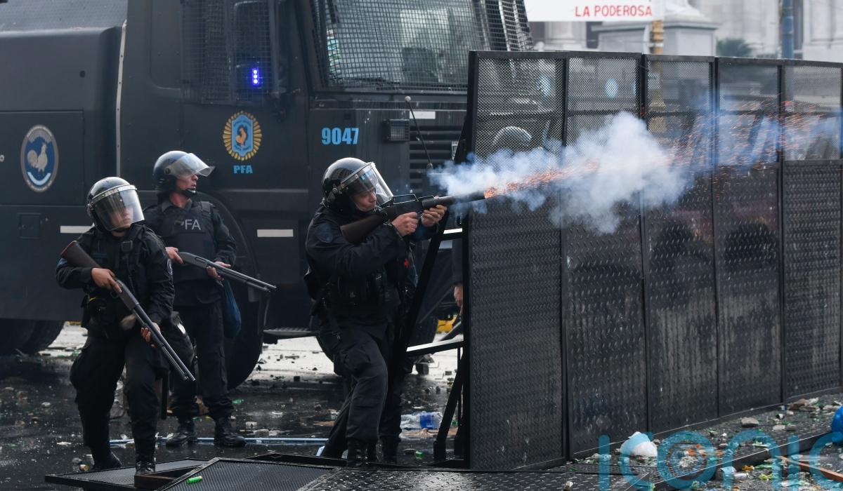 As senators looked over the bills, protesters in Buenos Aires hurled sticks, stones and Molotov cocktails at police who sprayed water cannons, pepper spray and tear gas to disperse the huge crowds.