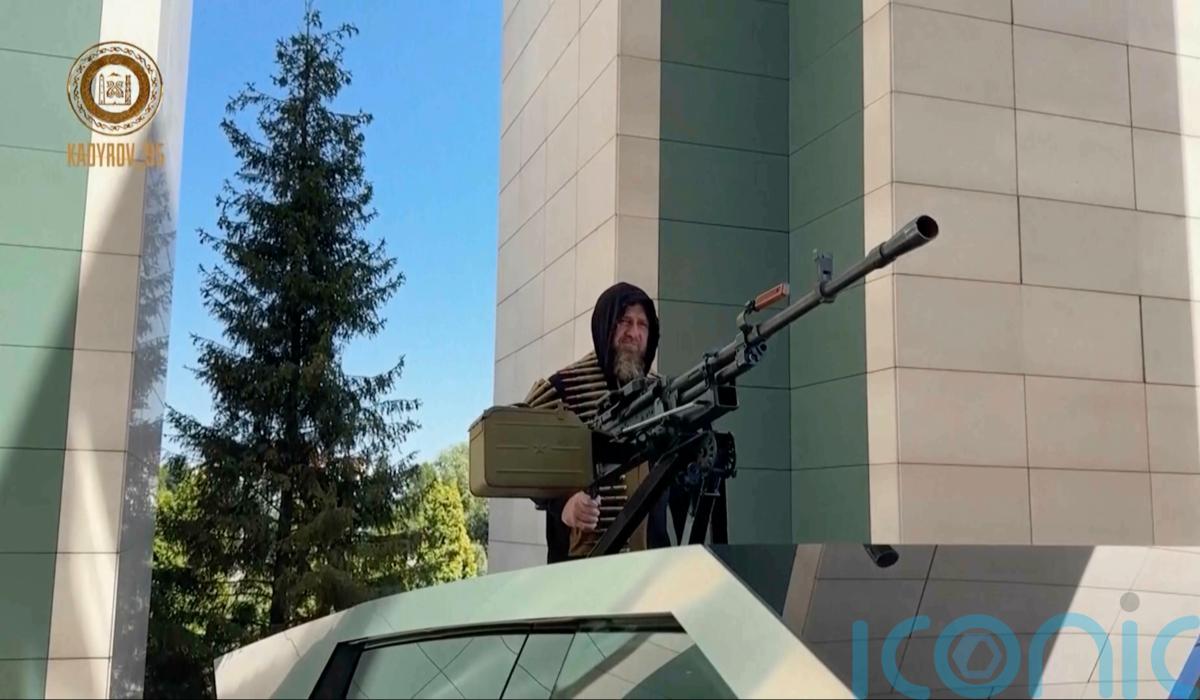 In a clip posted on Mr Kadyrov’s Telegram channel, the self-styled strongman was seen taking the stainless steel-clad Cybertruck for a leisurely drive before standing astride the machine gun mounted in the truck bed, draped with belts of ammunition.