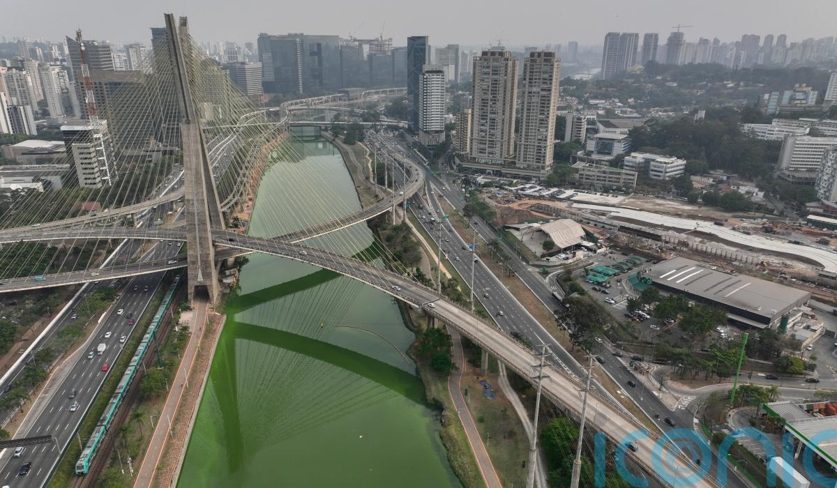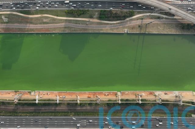 The state’s environmental authority attributes the Pinheiros River’s new green hue to an algae bloom, the result of severe drought that has significantly lowered water levels.