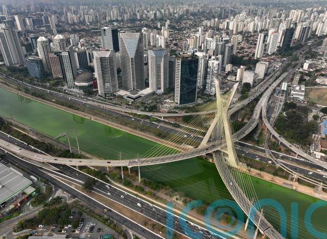 A major river in the Brazilian metropolis of Sao Paulo is suddenly emerald green and clear skies this week turned from blue to grey.