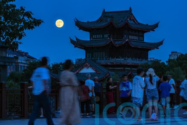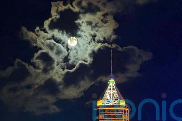Skywatchers have been treated to a partial lunar eclipse and a supermoon, all rolled into one.