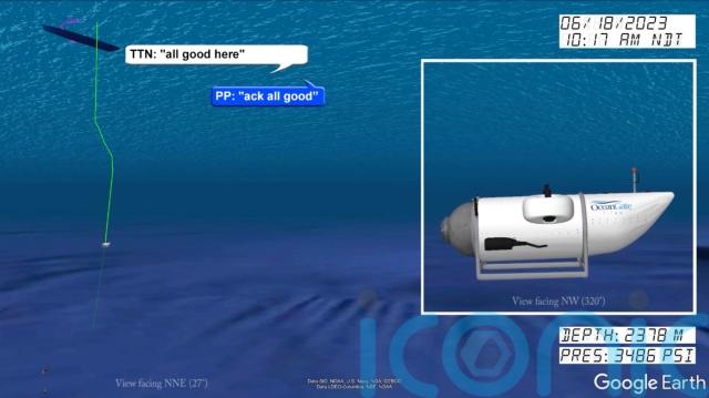 One of the last messages from Titan’s crew to Polar Prince before the submersible imploded stated “all good here” according to a visual re-creation presented earlier in the hearing.