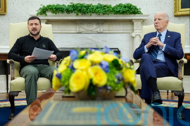 “We stand with Ukraine, now and in the future,” Mr Biden said, alongside Mr Zelensky in the Oval Office. “Russia will not prevail. Ukraine will prevail.”