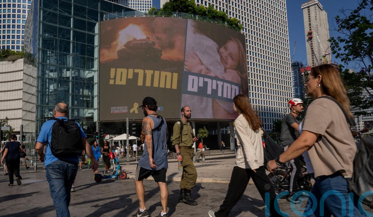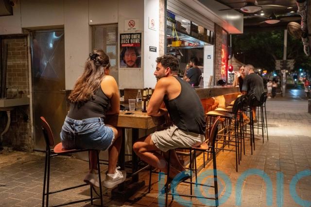 At a busy Tel Aviv entertainment district, diners spill into outdoor seating and clink glasses as music fills the air. There’s laughter, there’s life. But all around the patrons, staring down from lampposts and shop windows, are pictures of hostages held in Gaza, stark reminders that Israel is at war and forever scarred by the deadliest attack in its history.