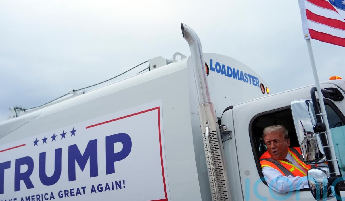 “How do you like my garbage truck?” Mr Trump said, wearing an orange and yellow safety vest. “This is in honour of Kamala and Joe Biden.”