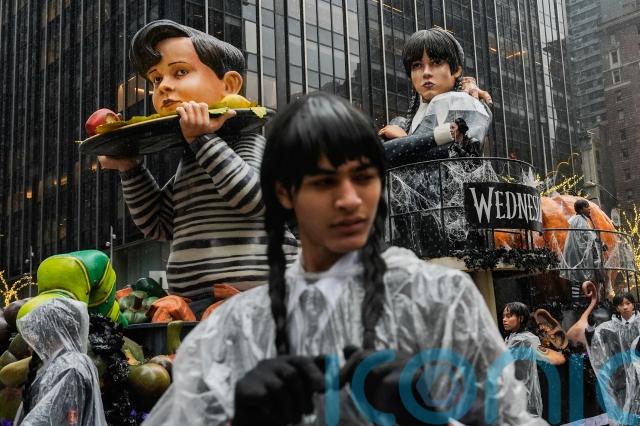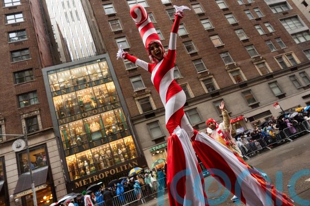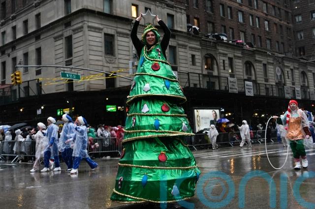Thanks to the wet weather, ponchos and umbrellas were part of the festivities, along with the usual giant balloons, floats and star-studded performances.
