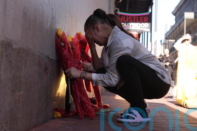 On Bourbon Street, flowers and candles were arranged as memorials to the victims, while yellow posts were set up on the surrounding blocks.