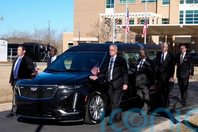 A motorcade with his flag-draped coffin began at the Phoebe Sumter Medical Centre in Americus, where former Secret Service agents who protected him served as pallbearers and walked alongside the hearse as it left the campus.