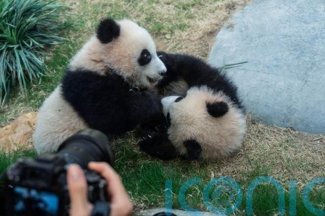 The competition to name the twin cubs, born on August 15 last year, launched on Saturday following a celebratory ceremony attended by Hong Kong leader John Lee and other officials at Ocean Park, the theme park that houses the twins, their parents and two other giant pandas that arrived from mainland China last year.