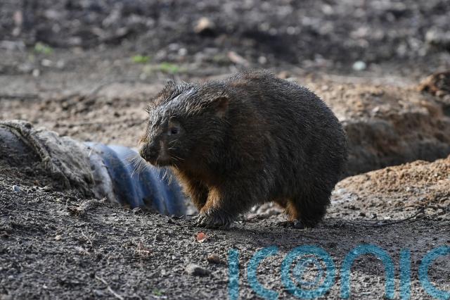 The wombat appears to be a common wombat, also known as a bare-nosed wombat. It is a protected marsupial found only in Australia.