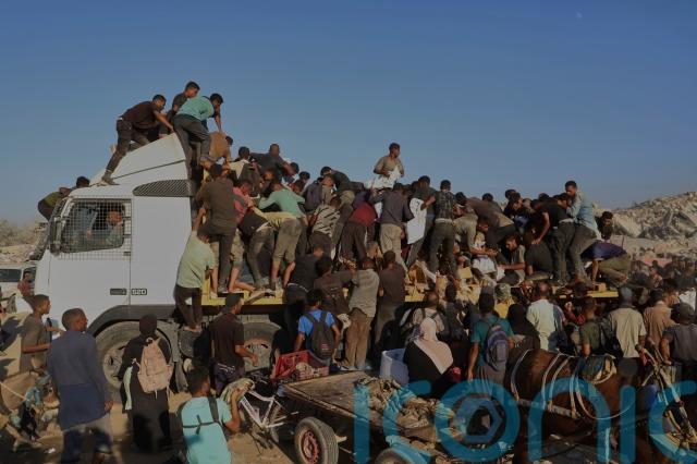 Thousands of Palestinians crowded against aid trucks entering the Gaza Strip through the southern Morag corridor on Monday, attempting to get whatever food they could during a protracted food shortage across the enclave.