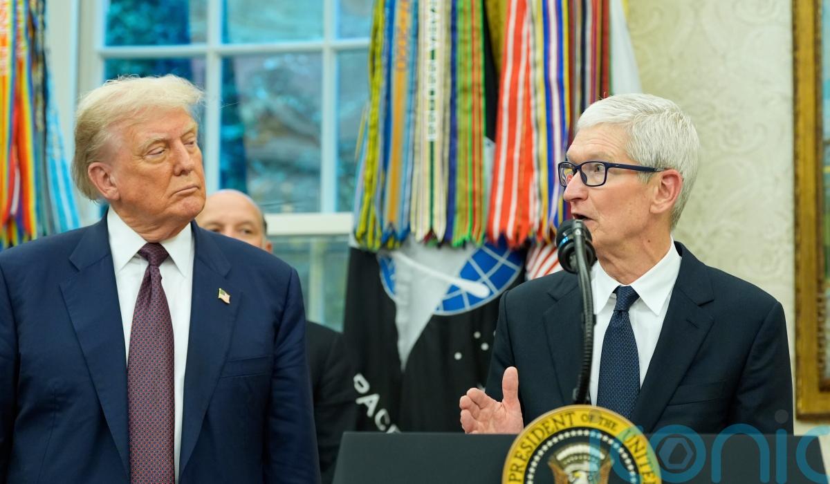 Mr Trump’s announcement came as Mr Cook joined him at the White House to announce a commitment by the tech company to increase its investment in US manufacturing by an additional 100 billion dollars (£74.9 billion) over the next four years.