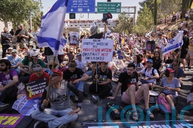 Protesters in Israel demanding their government make a deal to secure the release of hostages held by militants in Gaza escalated their campaign on Sunday, staging a strike that disrupted traffic and closed businesses.