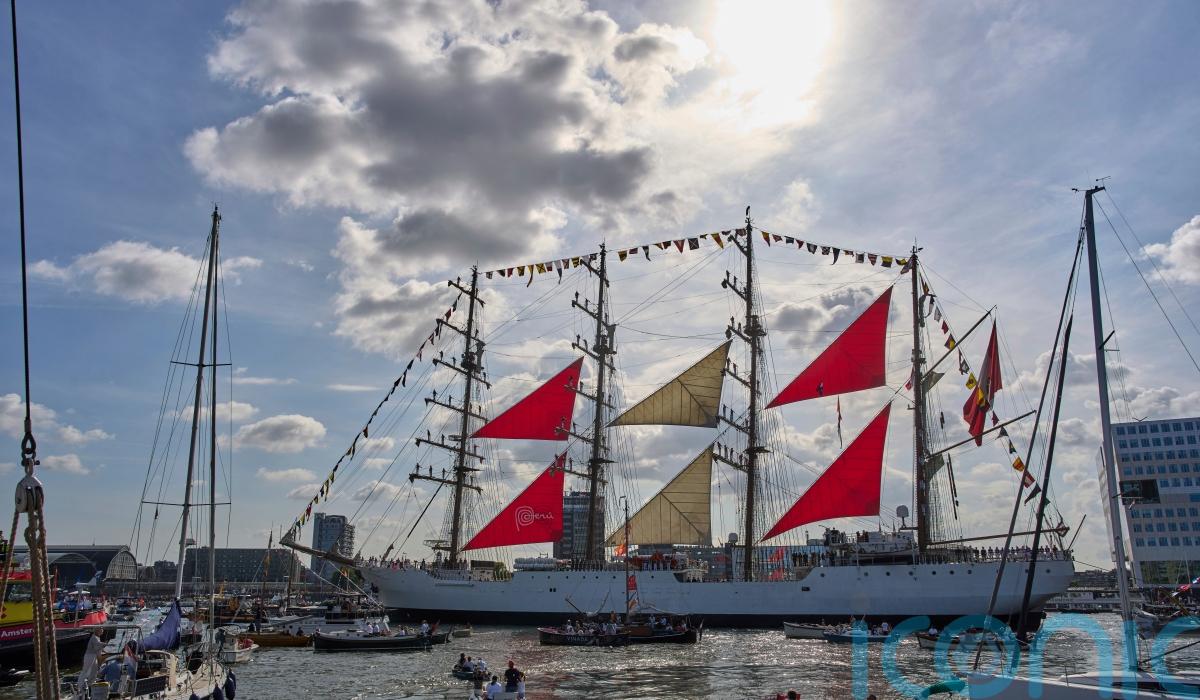 Ships from all over the world, many with their masts and rigging decorated with flags, sailed from the North Sea coastal town of IJmuiden on an hours-long journey up the North Sea Canal and into Amsterdam’s IJ waterway for Sail 2025, the first edition in a decade.