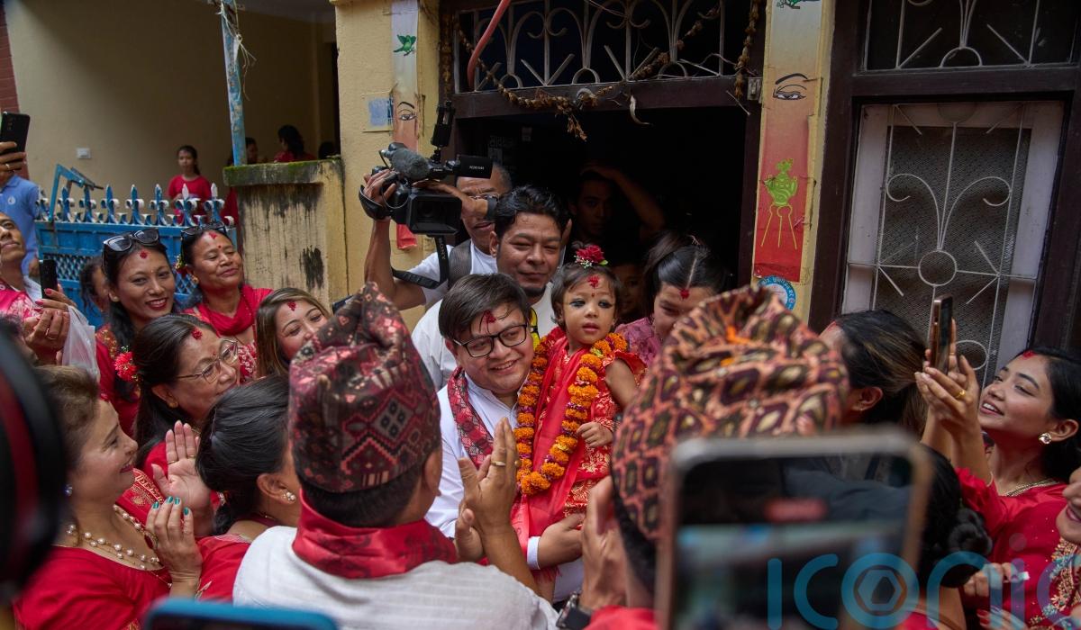 Family, friends and devotees paraded the child through the streets of Kathmandu on Tuesday, before entering the temple palace which will be her home for several years.
