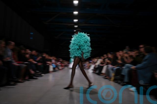 Upcycling was visible. Denim waistbands collaged into dresses, bags and even platform shoes. Sequins glimmered across Falabella clutches and hand-embroidered denim. There were sculptural satin evening gowns and corseted draping animated by the new feather substitute.