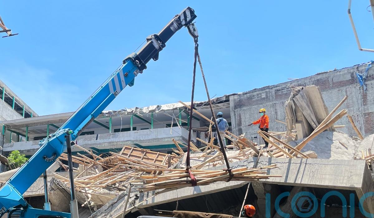 Indonesian rescue authorities have begun using heavy machinery to move large sections of a collapsed school, with no more signs of life from beneath the rubble and nearly 60 teenage students still unaccounted for.