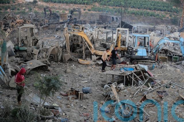 The pre-dawn air strikes on the village of Msayleh struck a place that sold heavy machinery, destroying a large number of vehicles.