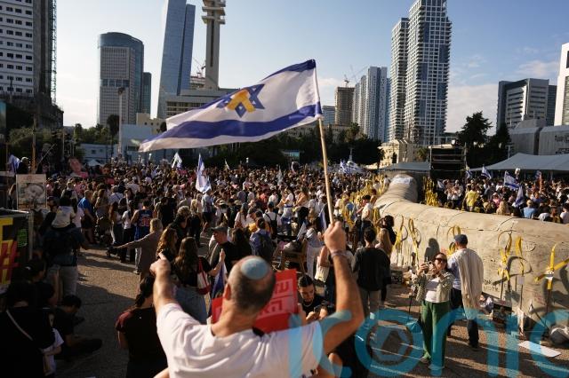 Air Force One touched down at Ben-Gurion International Airport at 9.42am local time (7.42am BST) after flying over Hostages Square in Tel Aviv, where tens of thousands were gathered, on the way to landing.