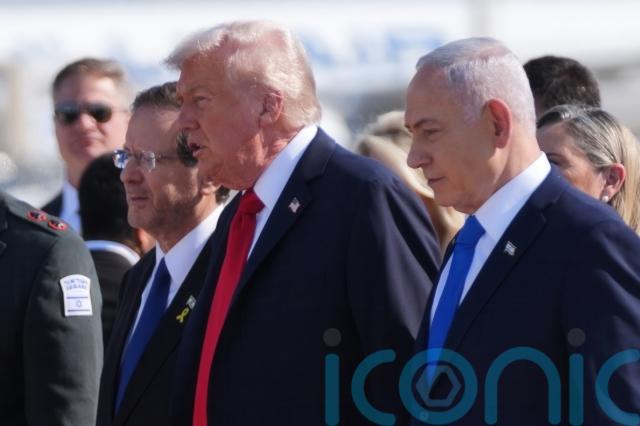 Israeli President Isaac Herzog and Mr Netanyahu greeted Mr Trump on the tarmac as a military band played. In Hostages Square in Tel Aviv, the site of continuous demonstrations during two years of war, the crowd cheered for Mr Trump.