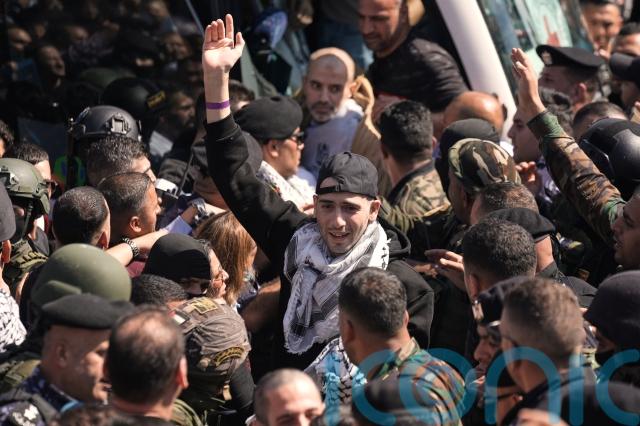 Earlier, while Palestinians awaited the release of hundreds of prisoners held by Israel, an armoured vehicle flying an Israeli flag fired tear gas and rubber bullets at a crowd. As drones buzzed overhead, the group scattered.