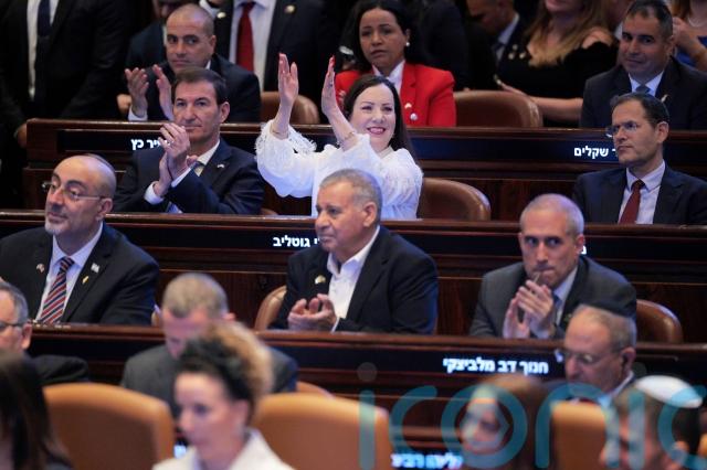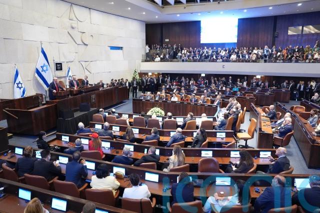 Israeli politicians chanted Mr Trump’s name and gave him standing ovation after standing ovation throughout the speech.