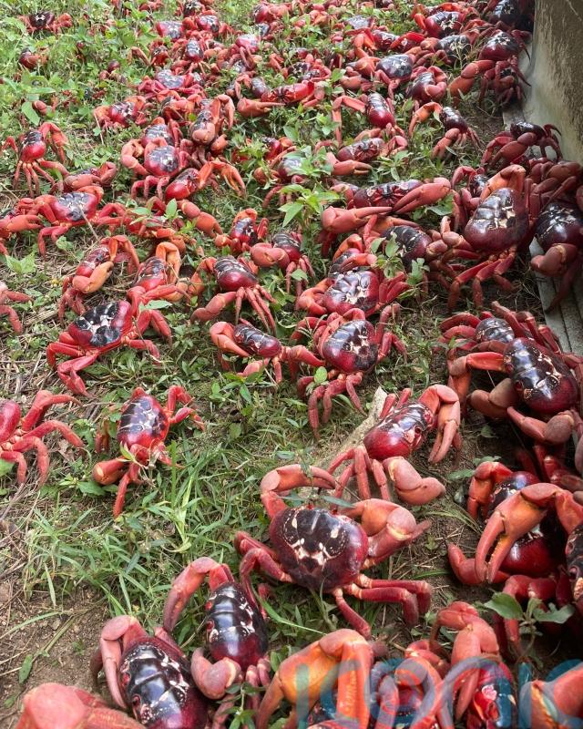 Their 1,200 human neighbours on the island generally do what they can to clear the red carpet of crustaceans off the roads.