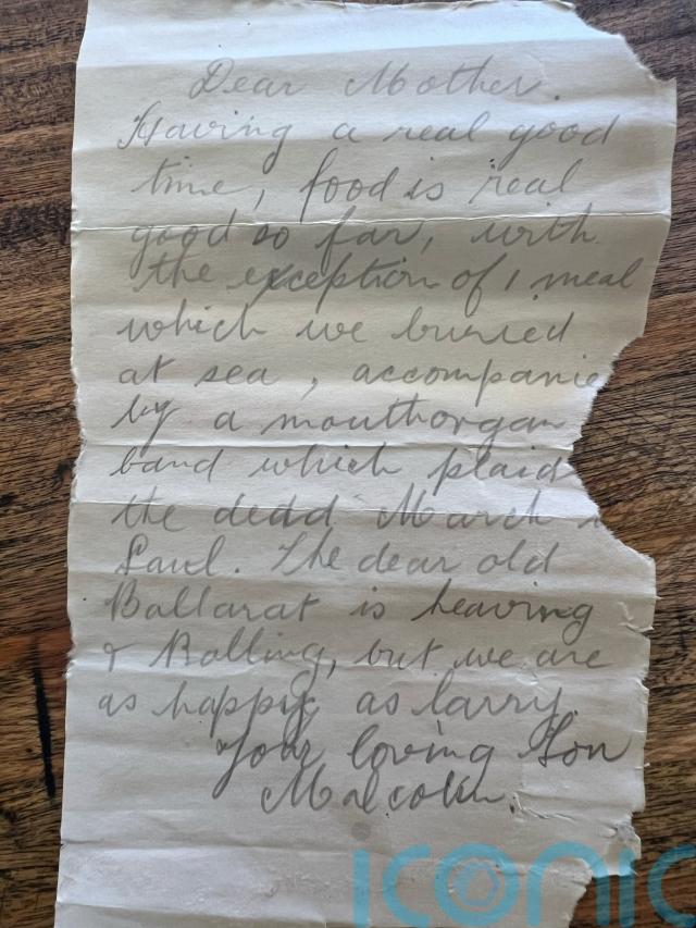 Mr Neville wrote that he was “having a real good time, food is real good so far, with the exception of one meal which we buried at sea”.