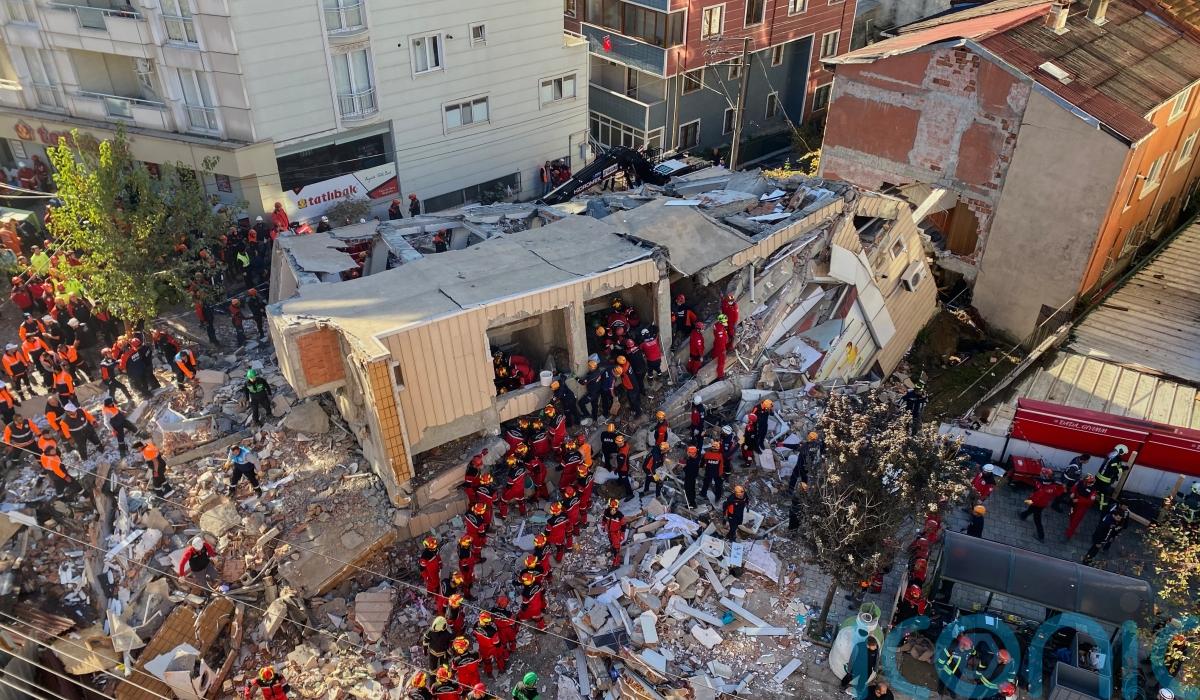 A seven-storey apartment building in Turkey’s north-western city of Gebze has collapsed, trapping a family of five under the rubble and killing two of them.