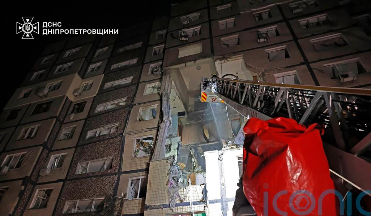 A fire broke out and several apartments were destroyed in the nine-story building in Dnipro, the emergency services said. Rescuers recovered the bodies of three people, including two women, and two children were among the injured.