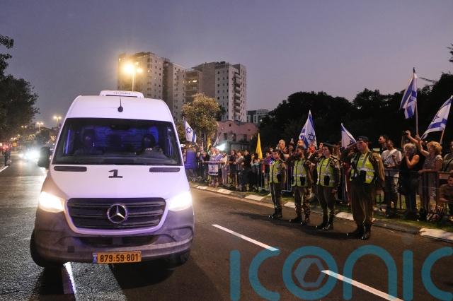 Dozens of people gathered along junctions where the police convoy carried the remains, holding Israeli flags and paying their last respects.