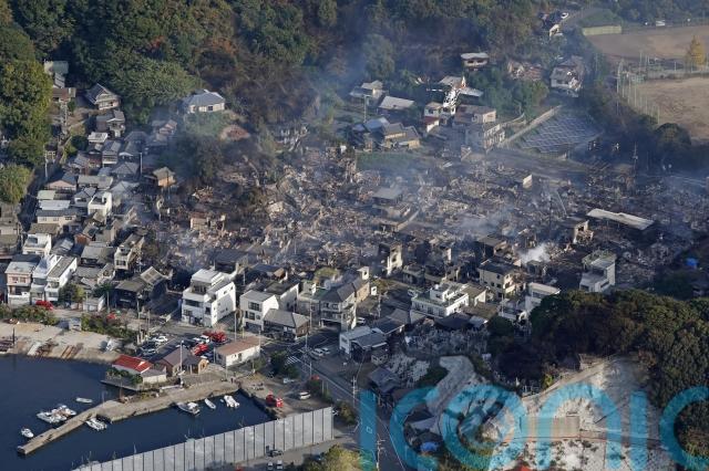 Japanese television footage showed smoke rising from swathes of land filled with destroyed and damaged houses, though orange flames were no longer visible by midday.