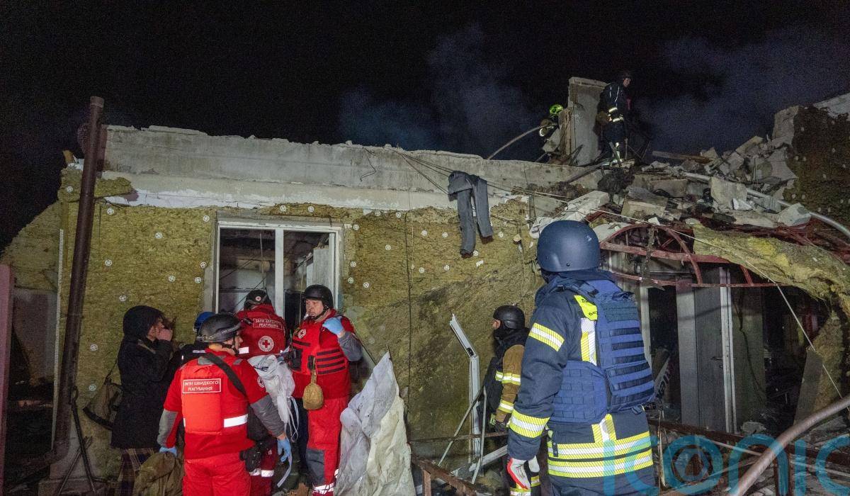 Eight residential buildings, an educational facility and power lines were damaged in the attack, according to the head of the regional military administration, Oleh Syniehubov.
