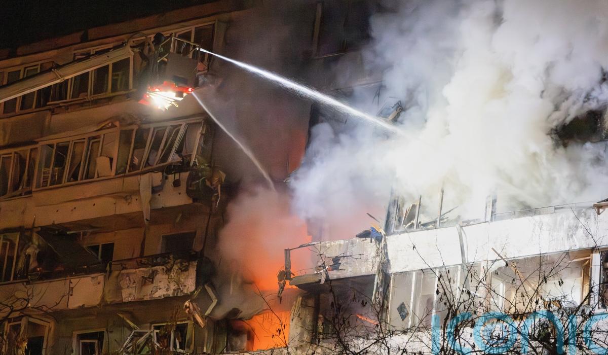Water, electricity and heating were knocked out in parts of the capital, Kyiv. Video footage posted to Telegram showed a large fire spreading in a nine-storey residential building in Kyiv’s eastern district of Dniprovskyi.