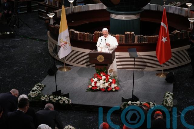 The American pope emphasised a message of peace in a speech alongside Mr Erdogan.