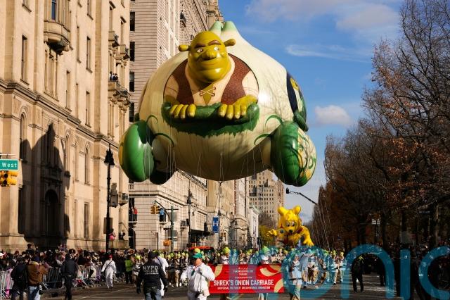 The parade featured a few new balloons, including a large onion carriage featuring eight characters from the world of Shrek.