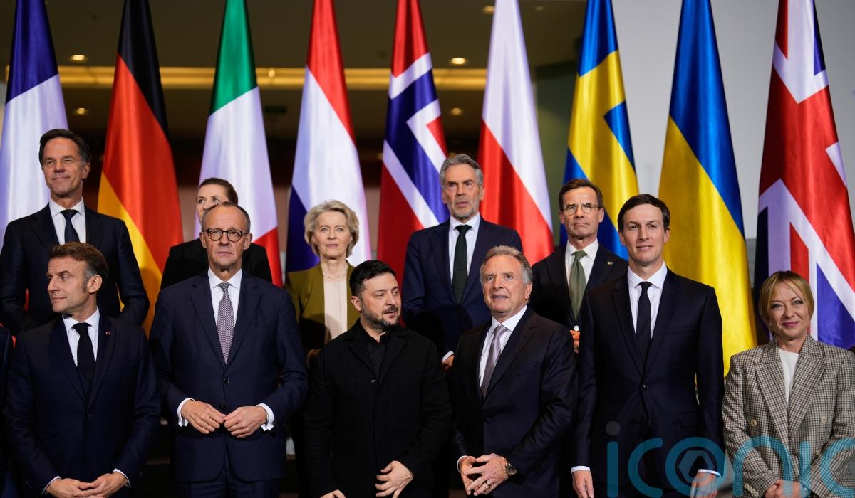 In a statement, European leaders in Berlin said they and the US committed to work together to provide “robust security guarantees”, including a European-led ”multinational force Ukraine” supported by the US.