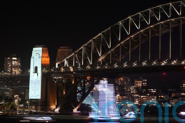 An hour before midnight, the massacre victims were commemorated with a minute’s silence as people held candles and switched on their phone flashlights while images were projected on the bridge pylons. The crowd was invited to show their solidarity with Australia’s Jewish community.