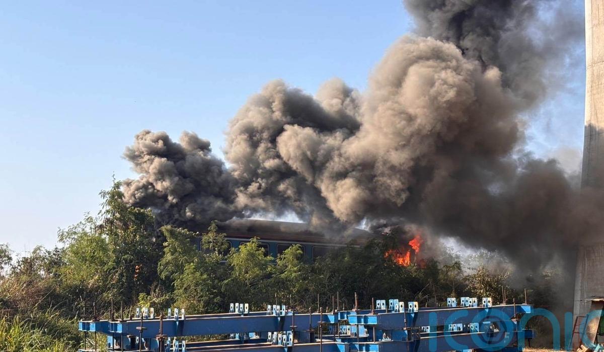 Photos published in Thai media showed plumes of smoke above the scene, and construction equipment hanging down from between two concrete support pillars.